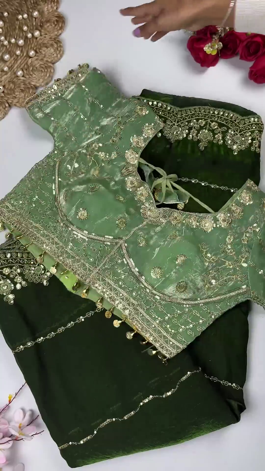 • Embroidery: Metallic thread floral & circular motifs with sequins