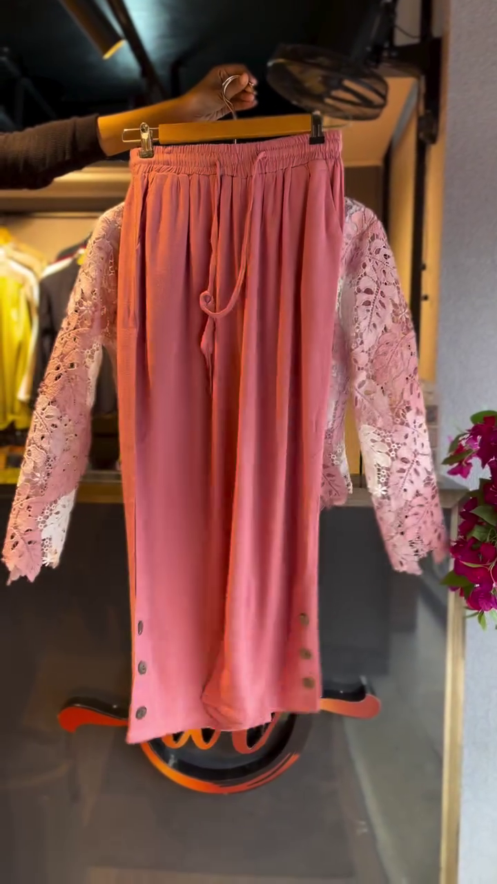 Lace Blouse in Rose & Wide-Leg Pants in Blossom Pink