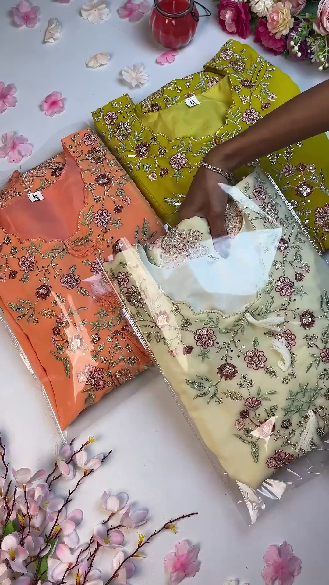 Design Philosophy: A fusion of nature-inspired botanical patterns with a clean, modern ethnic silhouette.
